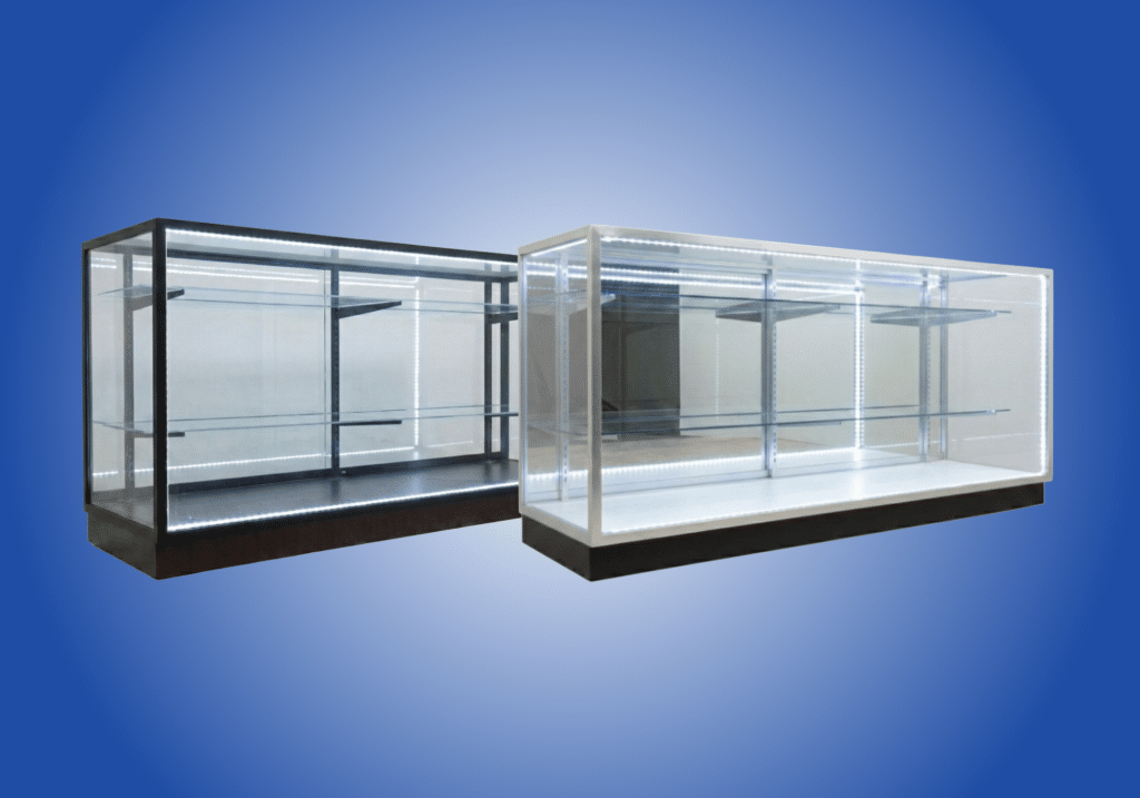 Displayarama usually keeps a few hundred retail display cases in stock and ready to ship at any given time. Inventory includes multiple styles, such as full vision and extra vision display cases and several color options, making it easier to build a cohesive run of showcases for your store.