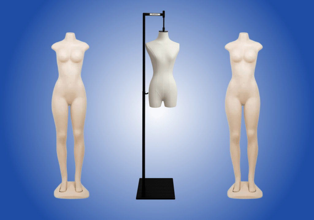 Clothing and fashion boutiques typically combine mannequins, gridwall or slatwall systems, display tables, and perimeter fixtures to highlight outfits and seasonal collections.