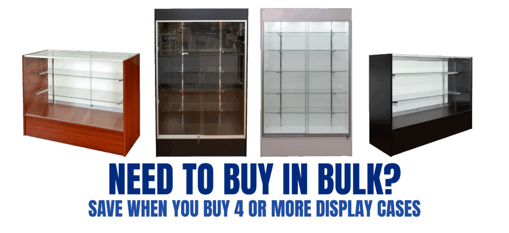 Our full vision display cases come with push-button locks, deep 10″ and 12″ tempered glass shelves.