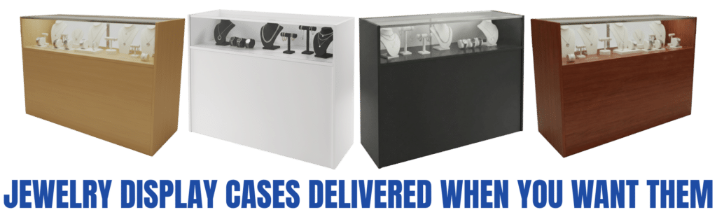 Our Glass Jewelry display cases come in standard sizes or can be customized. You’ll see our in-stock jewelry display cases on this page.