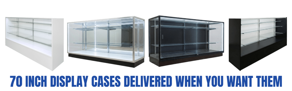 Looking for a 70 inch display case to showcase your products? Our premium 70 inch display cases are available in four attractive finishes, black, white, maple, and cherry to complement any retail environment. Each display case includes a secure lock for added safety and an optional LED lighting system to highlight your merchandise with professional appeal.