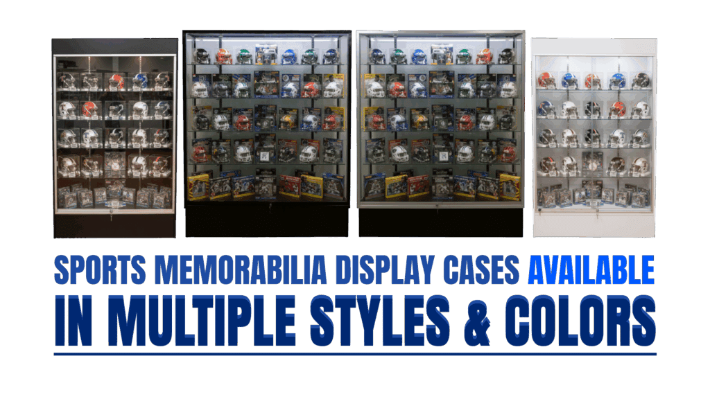 Options include wall display cases, and countertop display cases, as well as specialized models for items such as footballs, helmets, gloves, and cards. Many styles feature locking mechanisms, mirrored or velvet-lined bases, and an assortment of finishes to complement any space. Whether you’re outfitting a retail shop or adding the finishing touch to a home display, sports memorabilia display cases elevate and safeguard your prized sports collectibles with professional, gallery quality presentation