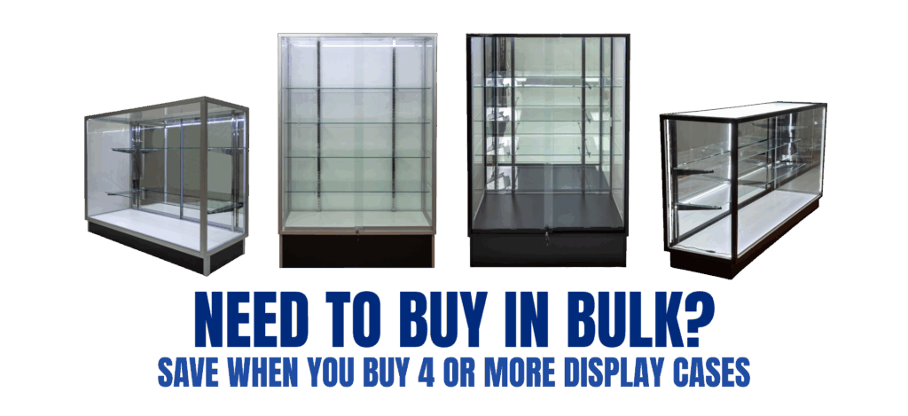 Our extra vision display cases come with mirrored doors, push-button locks, deep 10″ and 12″ tempered glass shelves, and bright LED lighting to showcase your merchandise beautifully and securely.