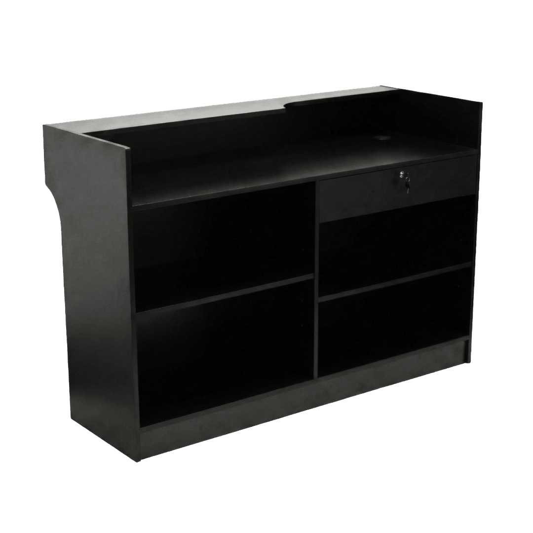 Black Checkout Counter that is easy to assemble. This black retail counter works perfect for any retail store.