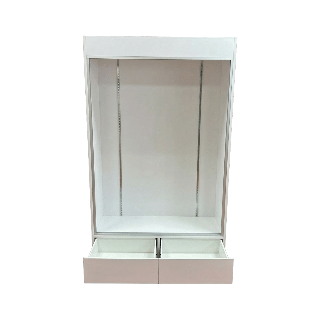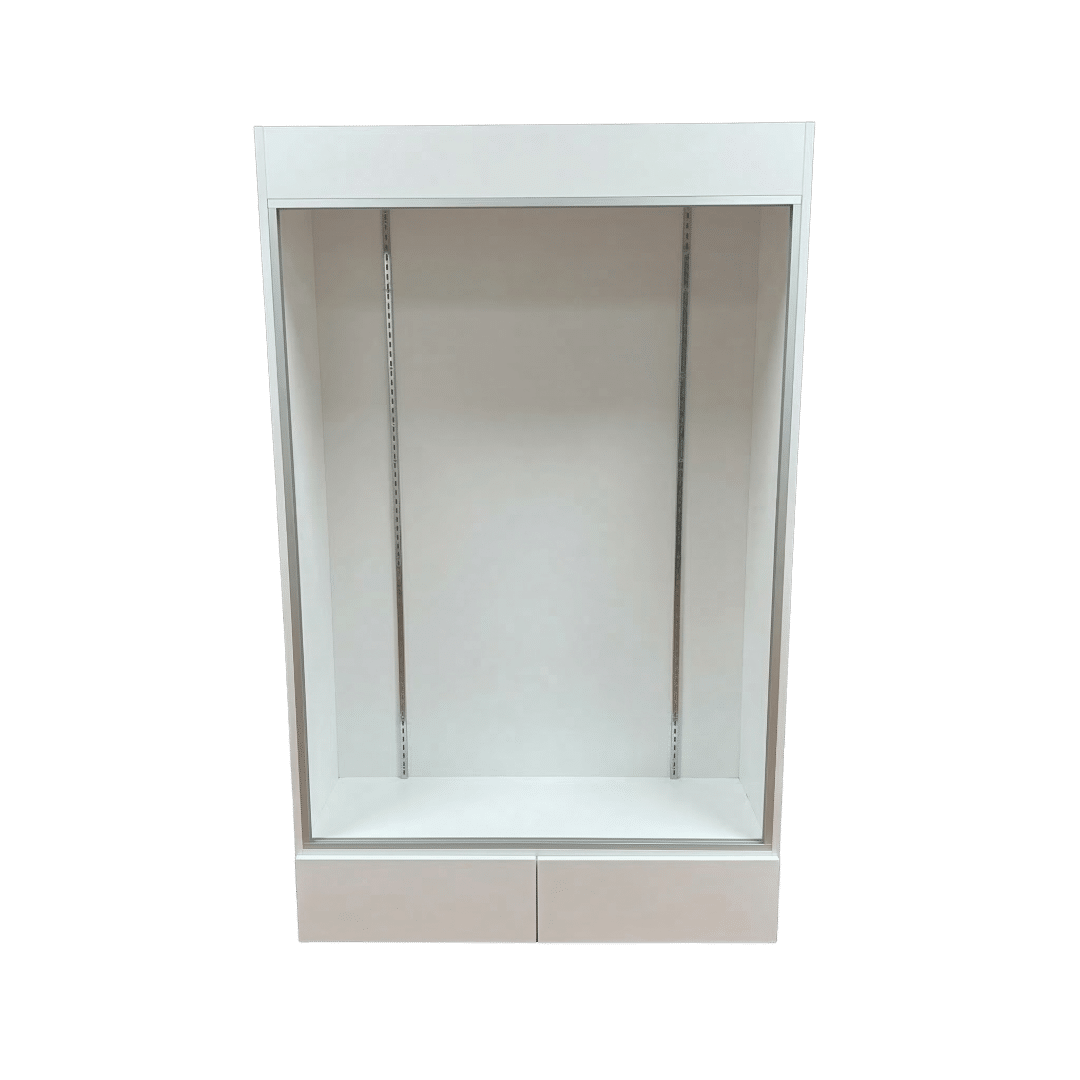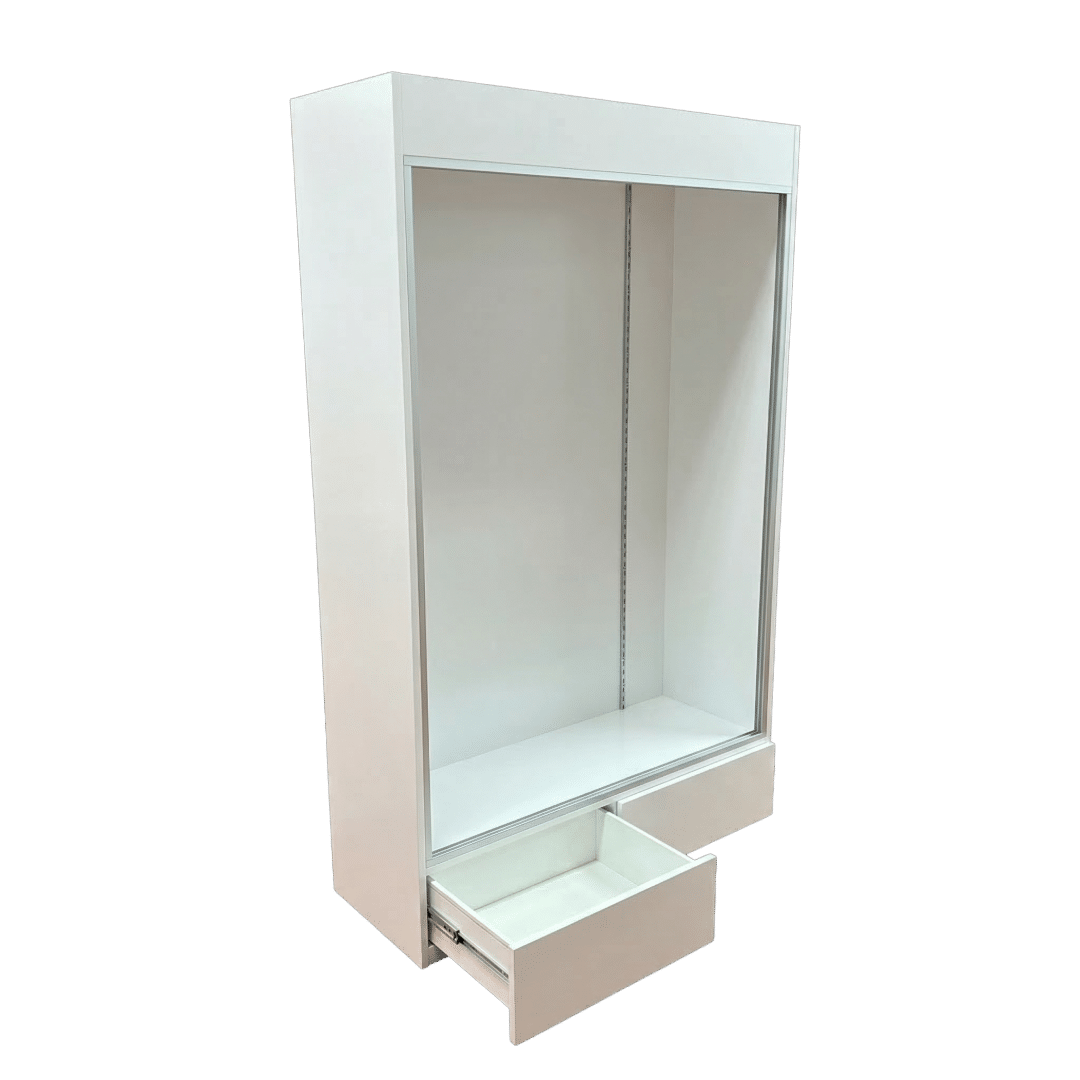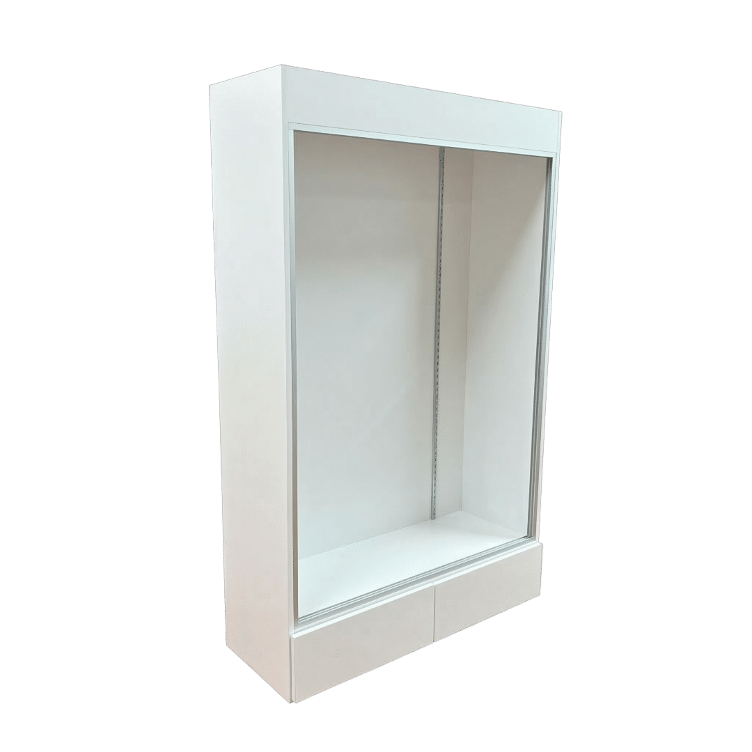 This sports card display case features a Black base and frame with 2 drawers, cards to be viewed from the front. Built with security and visibility in mind, it provides a reliable way to showcase and protect your collection.