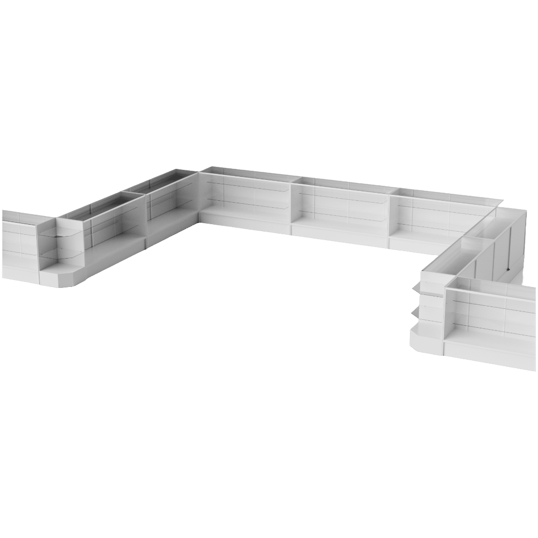 The most common layouts we see display cases utilized in stores is either in an “L” shape, “U” shape, kiosk square shape, or in a straight line.