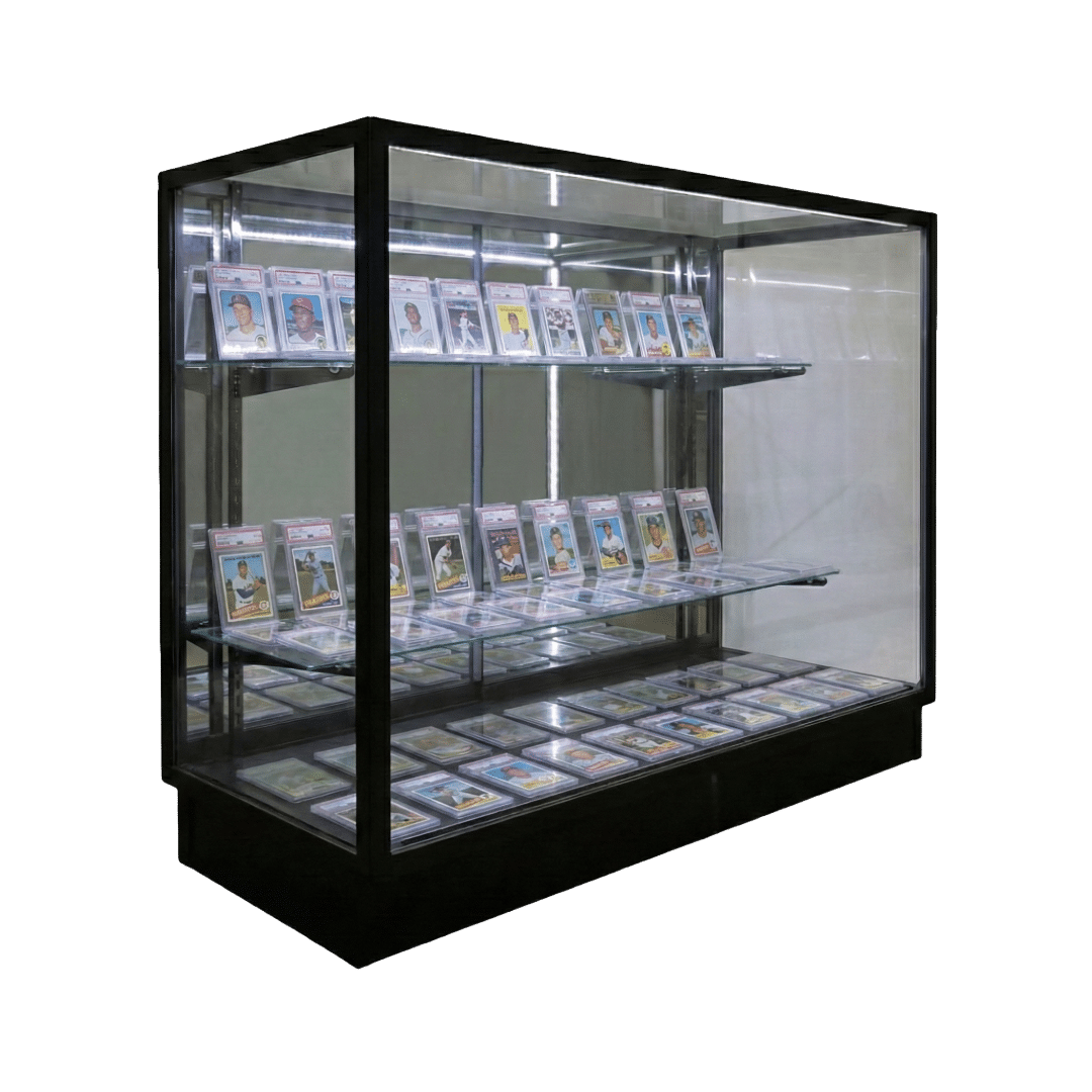 In any given display case, it is recommended to use good judgement. We have seen people in all sort of industries display products in our display cases. From guns, to hardware, sports cards, paint supplies, gaming stores, tobacco shops, clothing stores, jewelry stores, pawn shops, and the many other niches we work with – we have not gotten phone calls back about a shelf breaking due to weight.