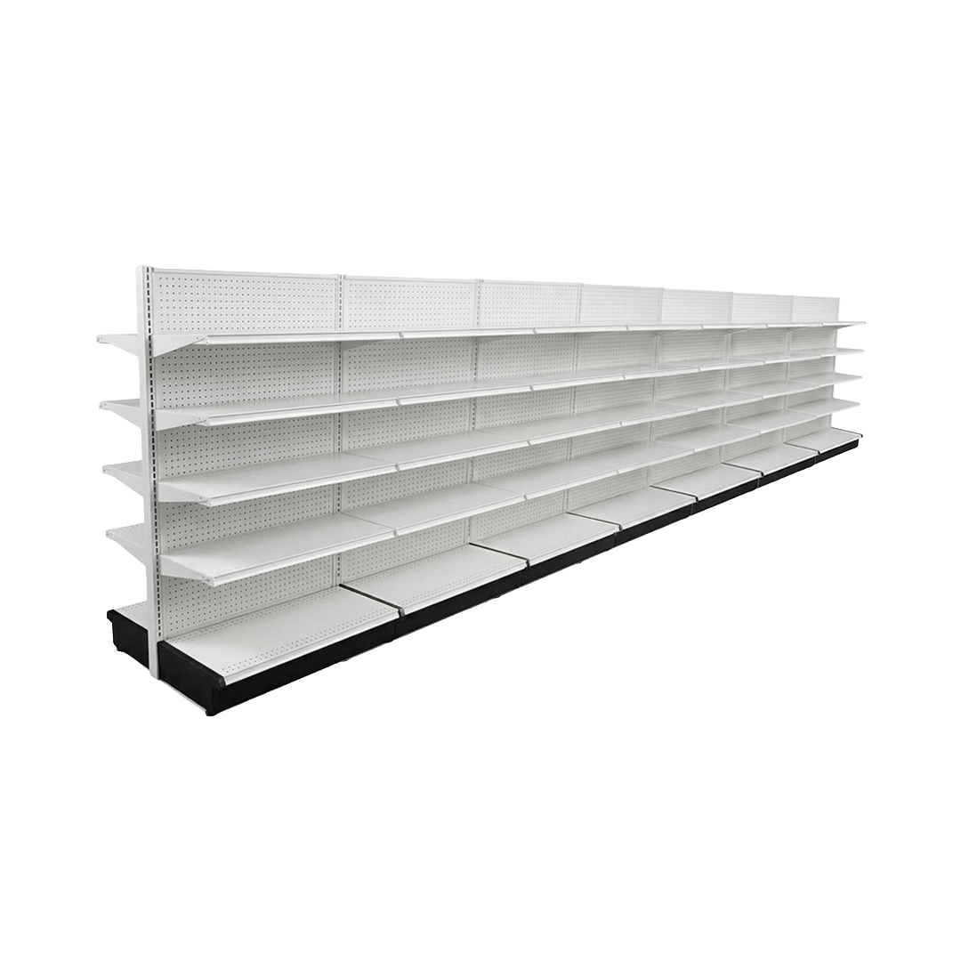 Gondola shelving is a freestanding retail display fixture made of durable metal with a flat base and vertical back panels. It’s commonly used in supermarkets, convenience stores, and hardware shops to neatly showcase a variety of products. The shelves attach to notched uprights, allowing you to easily adjust heights and configurations. Most gondola units feature pegboard backs for use with hooks and accessories, though some styles include solid backs or slatwall panels for a more custom look.