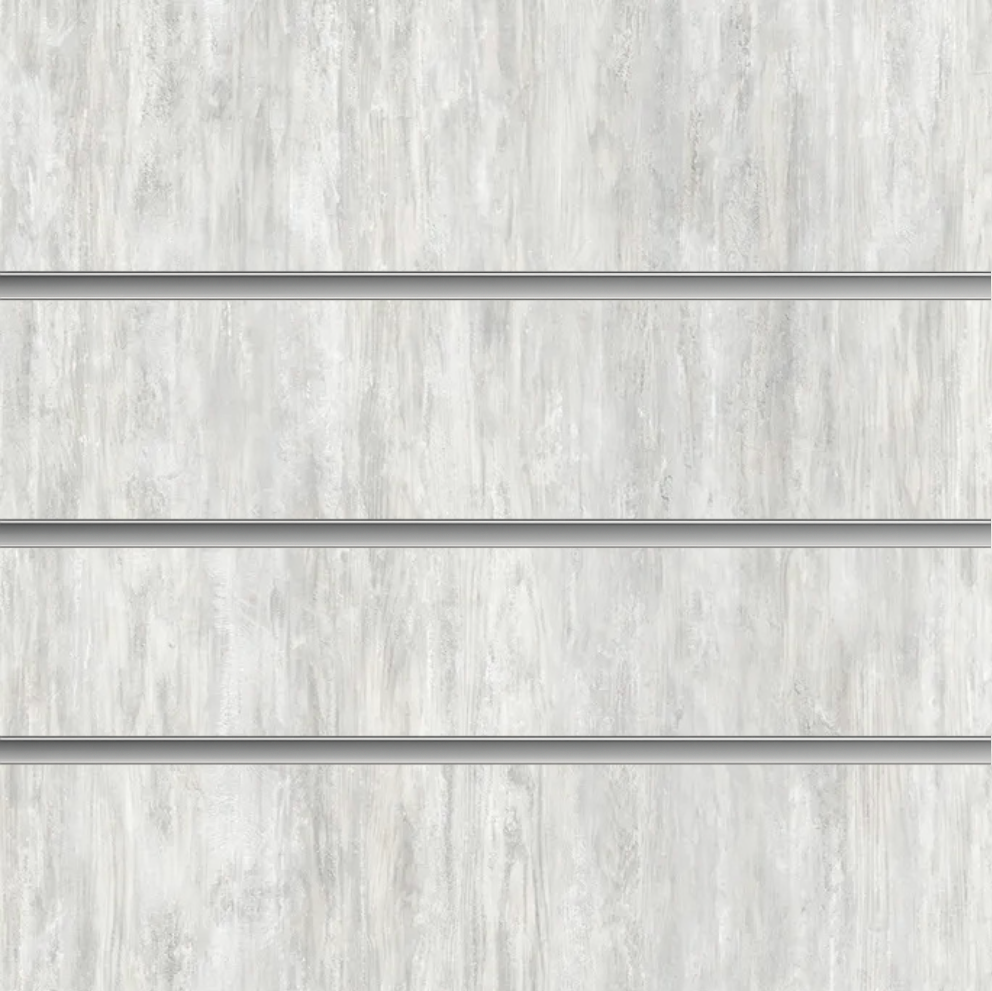 The White Cement Slatwall Panel is a wall-mounted retail display system featuring horizontal grooves for merchandising accessories. Made from high-density MDF with a White Cement finish, ideal for retail stores, boutiques, and commercial showrooms seeking a one of one custom aesthetic.